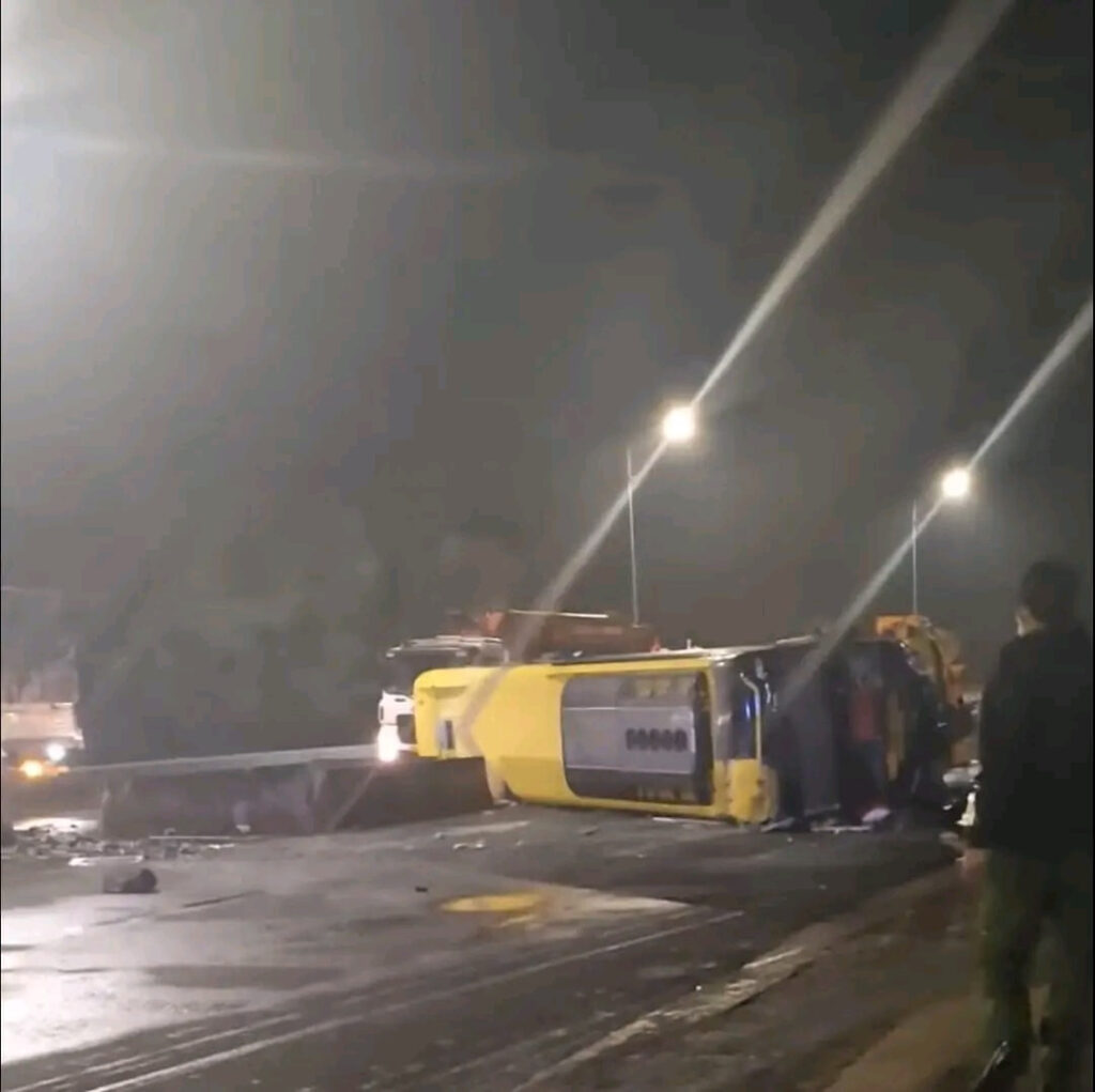 Nhiều người trên xe bị thương (chưa rõ số lượng và nhân thân); thiệt hại tài sản chưa xác định, xe khách bị hư hỏng nặng.