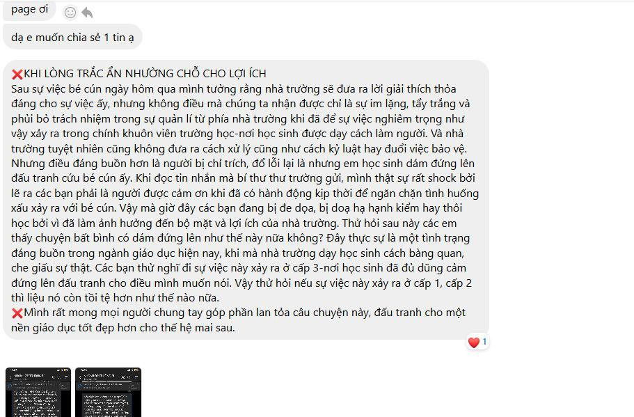 Hải Phòng: Học sinh nhiều khả năng bị kiểm điểm và cho thôi học sau khi đưa hình ảnh chú chó bị bảo vệ bạo hành. Khiến cộng đồng mạng ùa vào chửi trường, phía nhà trường cho rằng em làm xấu hình ảnh của trường nên cần phải xử lý